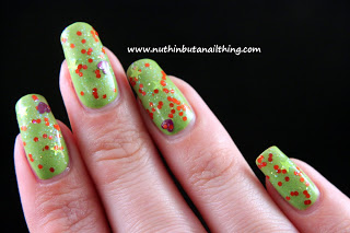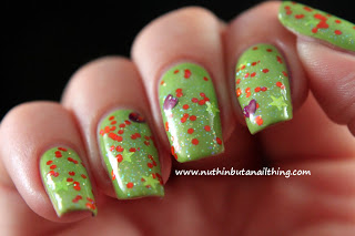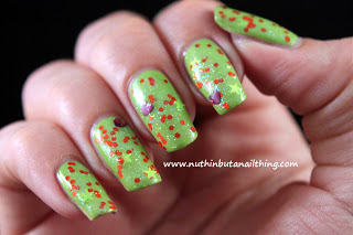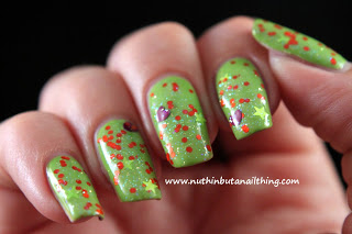 Swatches below over a Barry M Passion Fruit